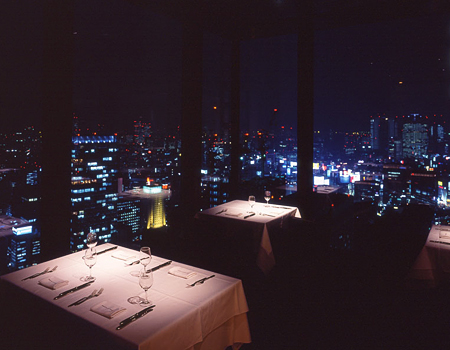 最上階クラウンレストランからの眺めは絶景です。東京タワーへと続く車のテールランプが煌くキャンドルと光りの絨毯を思わせます。